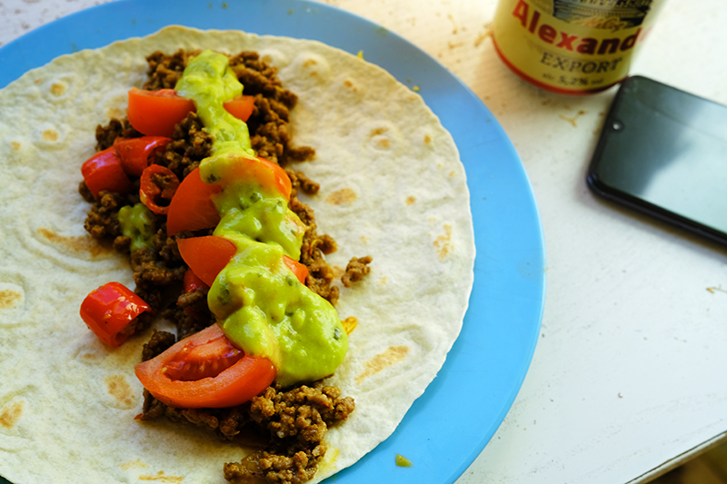 Että tacoja huuleen.