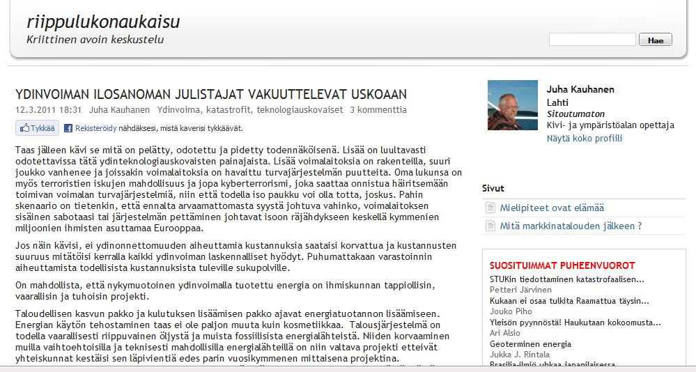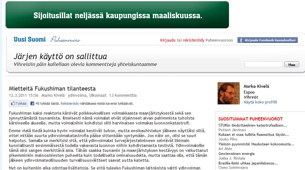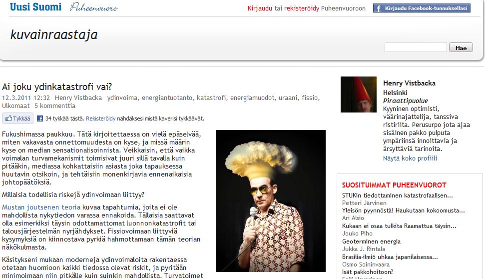Kyllähän sen uutistoimittajan ymmärtää. Tämähän on hattutemppu, maanjäristys, tsunami ja ydinonnettomuus. Voiko parempaa olla lehden myynnin kannalta?