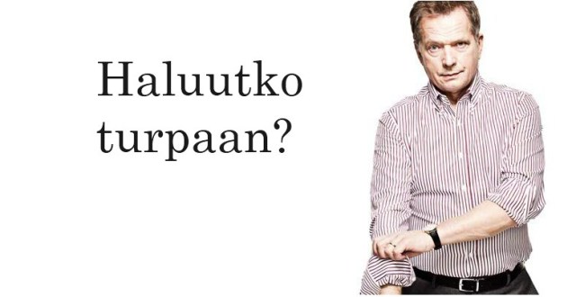 Kategoria(t): Uncategorized Avainsana(t): Haluatko turpaan, presidentinvaalit 2012, Sauli Niinistö. Lisää kestolinkki kirjanmerkkeihisi.