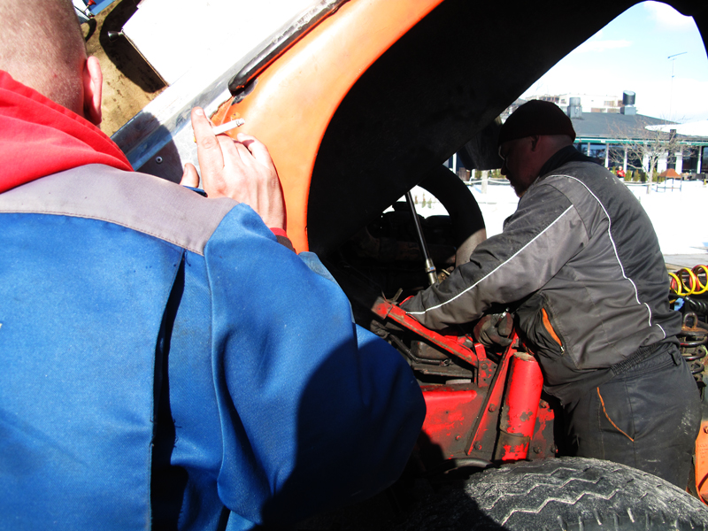 Aamulla toimitusjohtaja Lulu toivotti kaikille hyvää huomenta, 125-vuotis juhlakiertueen kunniaksi. Pakkasta oli vajaa kymmenen astetta miinusta. Hyvää kevättä vaan. Tuli nimenhuuto, ja en päätynyt maailmanpyörään tai vuoristoradalle. Tuli Komennus Köllin avuksi. Eli Twister ja Gravitron. Ei paha. Sain myös ajokin, jonka vaunu piti ensimmäiseksi kaivaa lumesta irti. Siinähän se aamu sitten seisoskellessa ja odotellessa että pääsen toimeen meni.