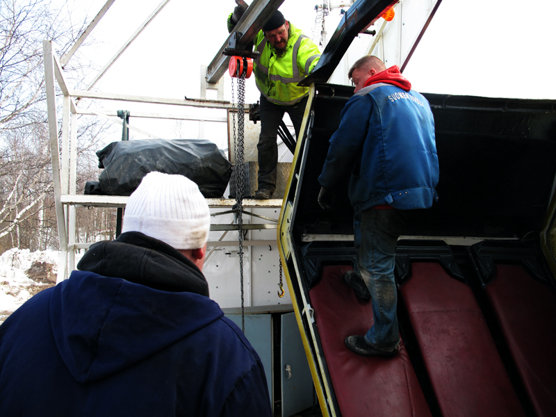 Joonas, Sähkö Timo ja Kölli saavat Gravikan ensimmäisen seinän paikallee. Yleensä niin arka kuvia kohtaan oleva Kölli ihan pyysi että otan kuvan. No, minähän otin.