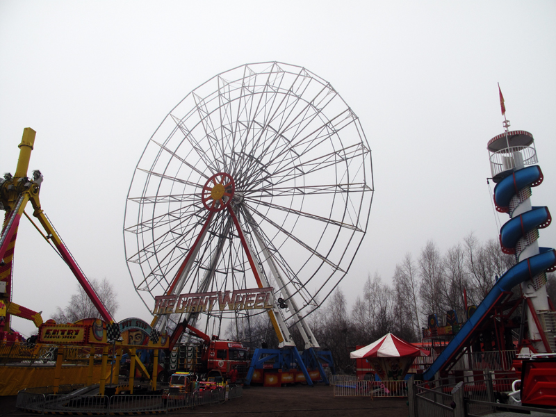 Viisi tuntia tivolin avaamiseen. Maailmanpyörä on vähän vaiheessa.