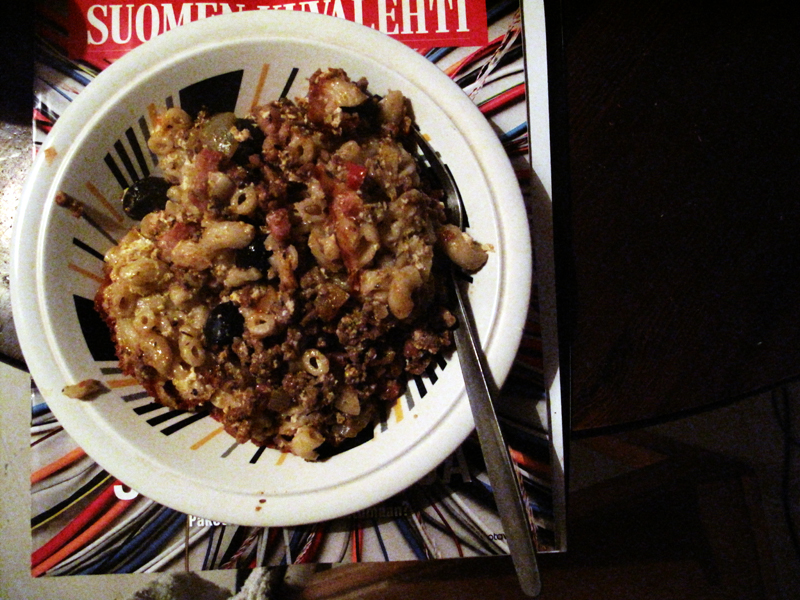ai niin, macaroni, 200 grammaa, keitä kun on kypsä.