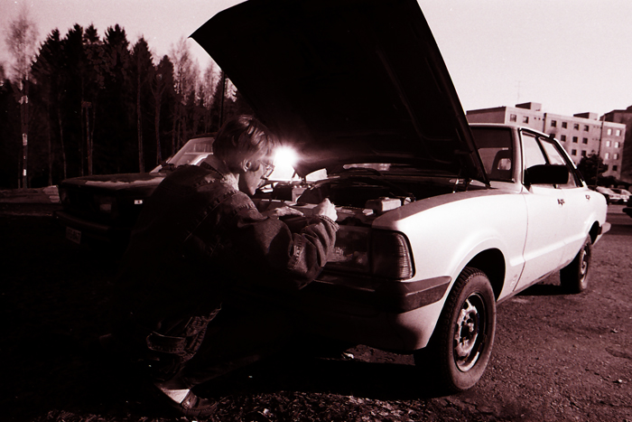 Aimo Törmäsen kanssa kuvattiin Gamelbackassa talvella ja keväällä 1994. Kuvista tehtiin näyttely paikalliseen kirjastoon. Taidettiin saada kunnan taidetoimikunnalta pari tuhatta markkaa apurahaakin. Jotka kaikki paloi kehyksiin.
