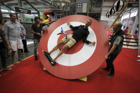 Kuvannut Jyrki Johannes Tervo ja kuva on varastettu Hesarin sivuilta. Pääministeri A Stubb ihmismaalina Duudosinien huvipuistossa 11 elokuuta kuluvaa vuotta.