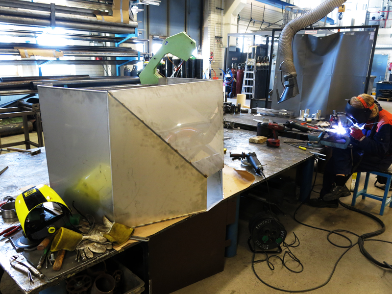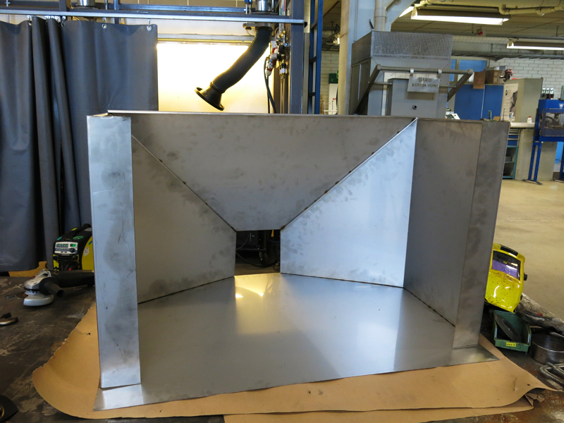 Alapuolelta katsottuna. Vähän pitää hitsata vielä. Noin 2 metriä. Rosteria Tigillä. Ja minäkö en ole rosteria tätä ennen hitsannut. aika kova ja iso kappale ekaksi harjoitukseksi.