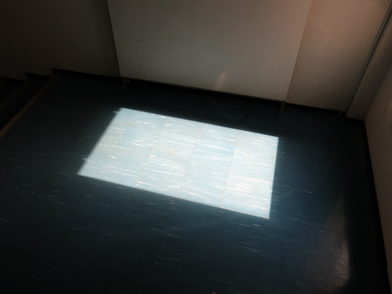 Enemmin auringon tanssia lattialla, kun teeveetä