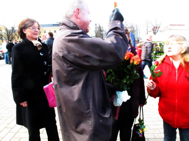 Huonossa räpsyssä Kaj Bärlund jakaa ruusuja Porvoon torilla, vaalipäivänä 2011.