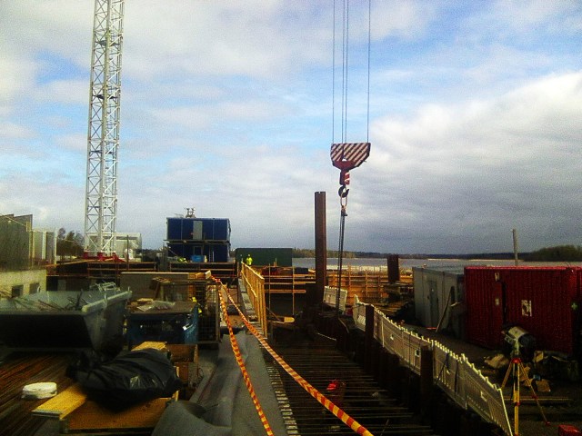Koko päivä venttaa, kun mestat ei ollutkaan valmiina ja elementtiasentajien pomo huutaa kurkku suorana. Ei ihme, yleensä asentavat sen 25 kiveä ilman hikeä, niin tänään asensi kaksi ryhmää 4 kiveä. Minä hitsasin 6 saumaa.