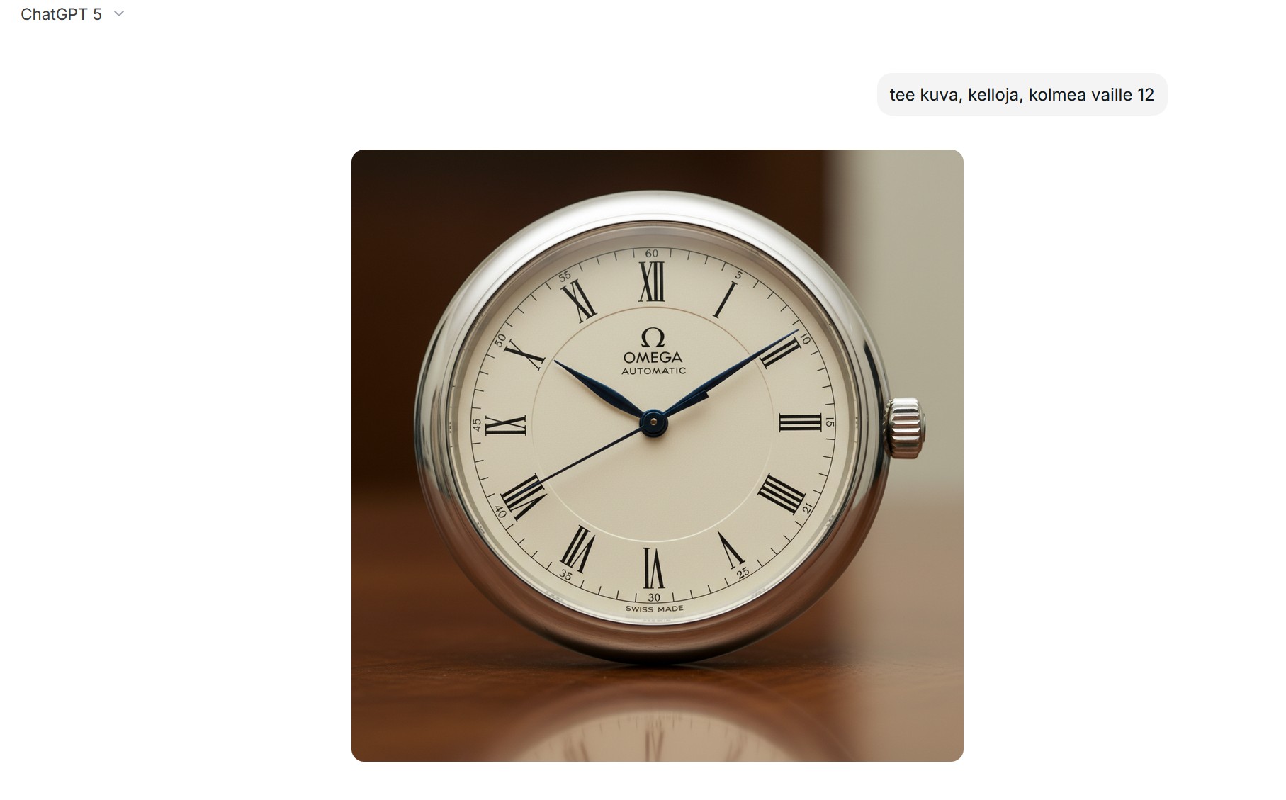Tekoäly on kuin erittäin viisas lukutoukka, joka on lukenut kaikki maailman kirjat pimeässä huoneessa, mutta ei ole koskaan kävelyt ulkona tai kokeillut käyttää omia käsiään.OngelmaSyyKelloAika ei ole kieltä, vaan jatkuvasti muuttuva ulkoinen fakta.KädetData on ristiriitaista (peilikuvat) ja anatominen ymmärrys puuttuu.SuunnatTekoälyllä ei ole kehollista kokemusta ”itseensä” nähden.