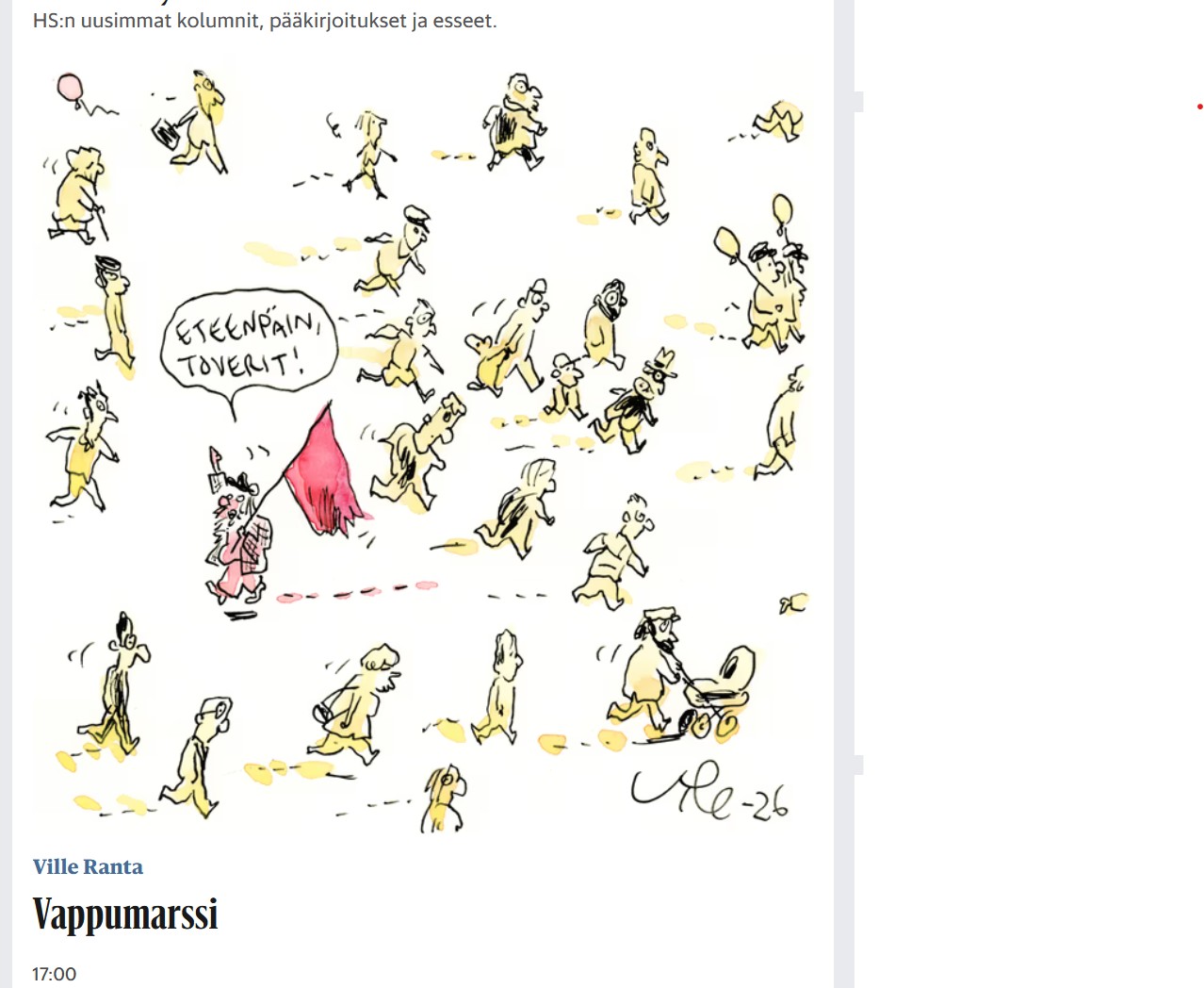 Tämä on ymmärrettävää, ei ole vahvaa punapääomaa, jotka palkkaisi vasemmistolaisia pukkamaan propagandaa. Mitä nyt puolue, ja sekin joutuu turvautumaan Paavo Arhinmäkeen, kiipeämässä punalipun kanssa Työväentalon torniin. Kunnioitettavaa kapinaperinettä sanoisin, mutta ei yksi paavo kevättä vappua tee, vaikka kuinka on lipunkantaja.